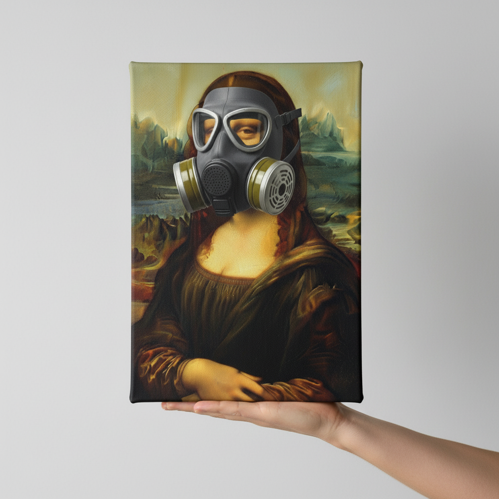 Mona Lisa in a Gas Mask Canvas Wrap – When the Louvre Meets the Loo